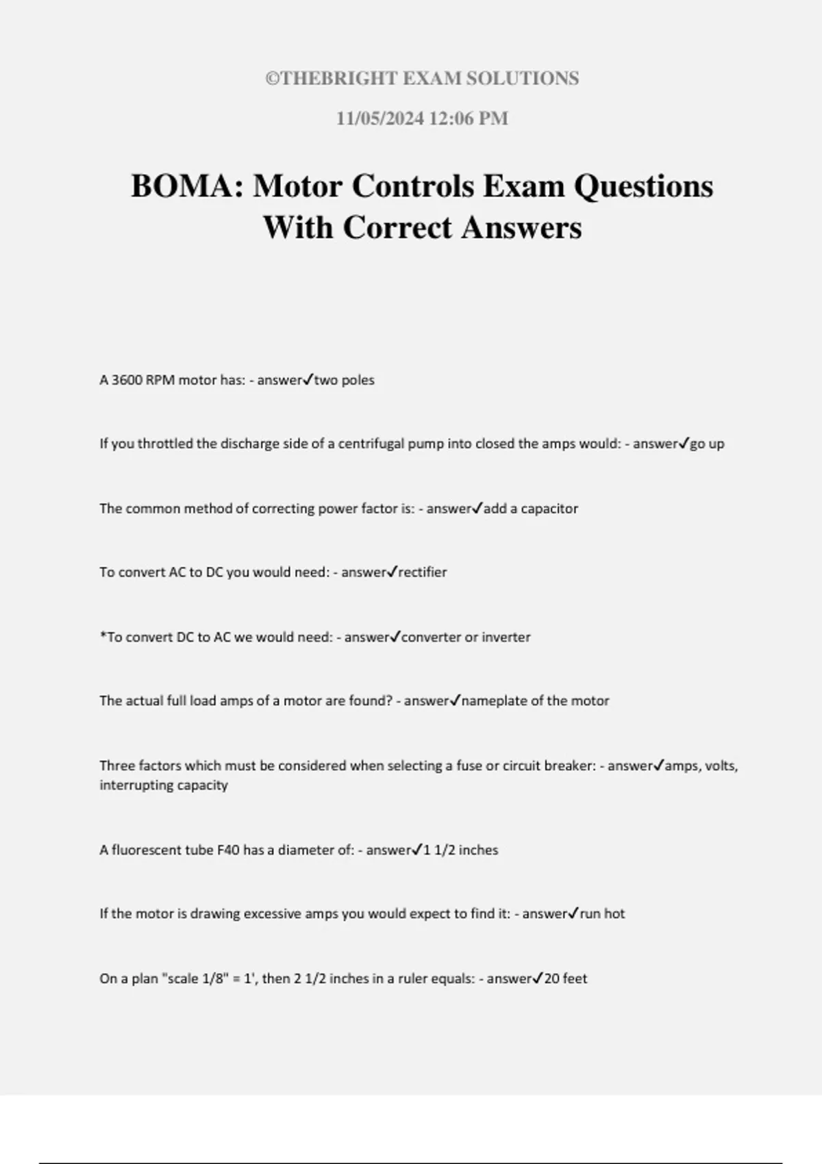 BOMA: Motor Controls Exam Questions
