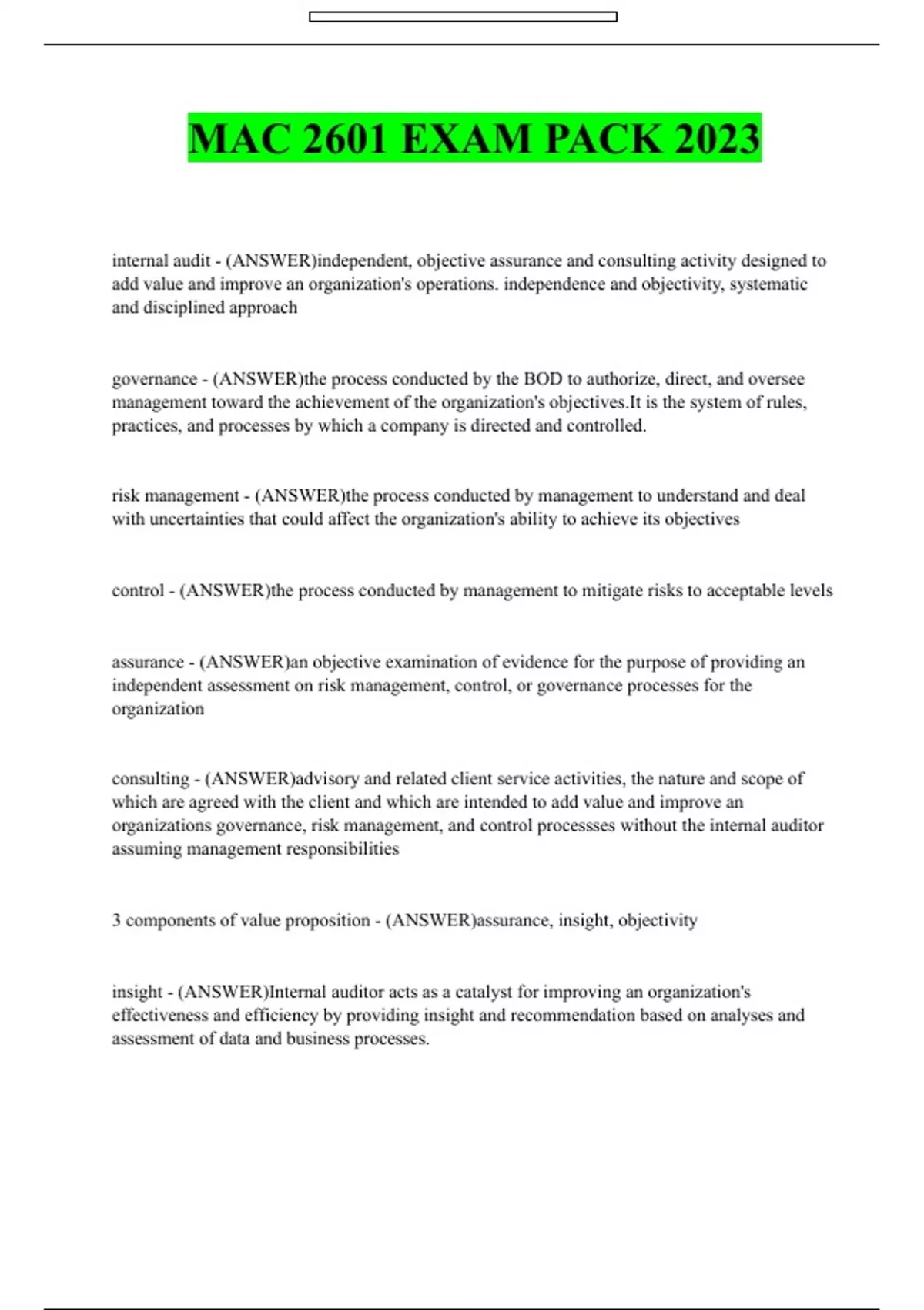 internal audit - (ANSWER)independent, objective assurance and consulting activity designed to