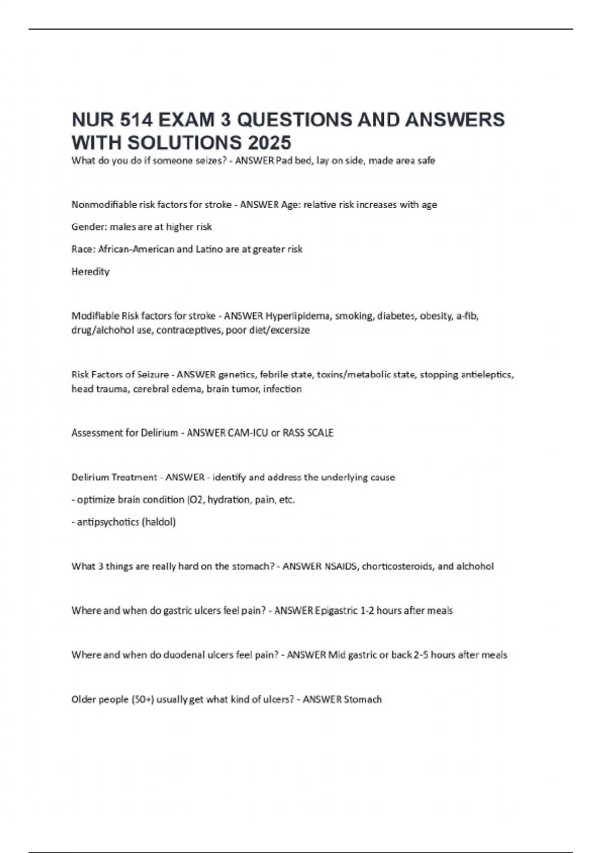NUR 514 EXAM 3 QUESTIONS AND ANSWERS WITH SOLUTIONS 2025