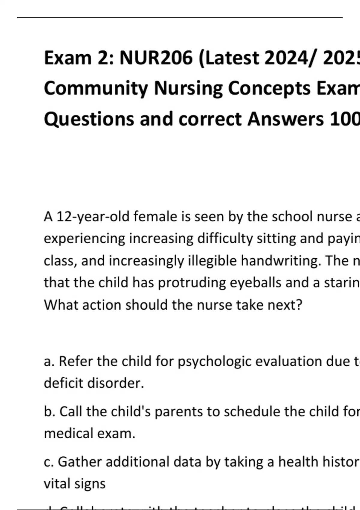 Community Nursing Concepts Exam