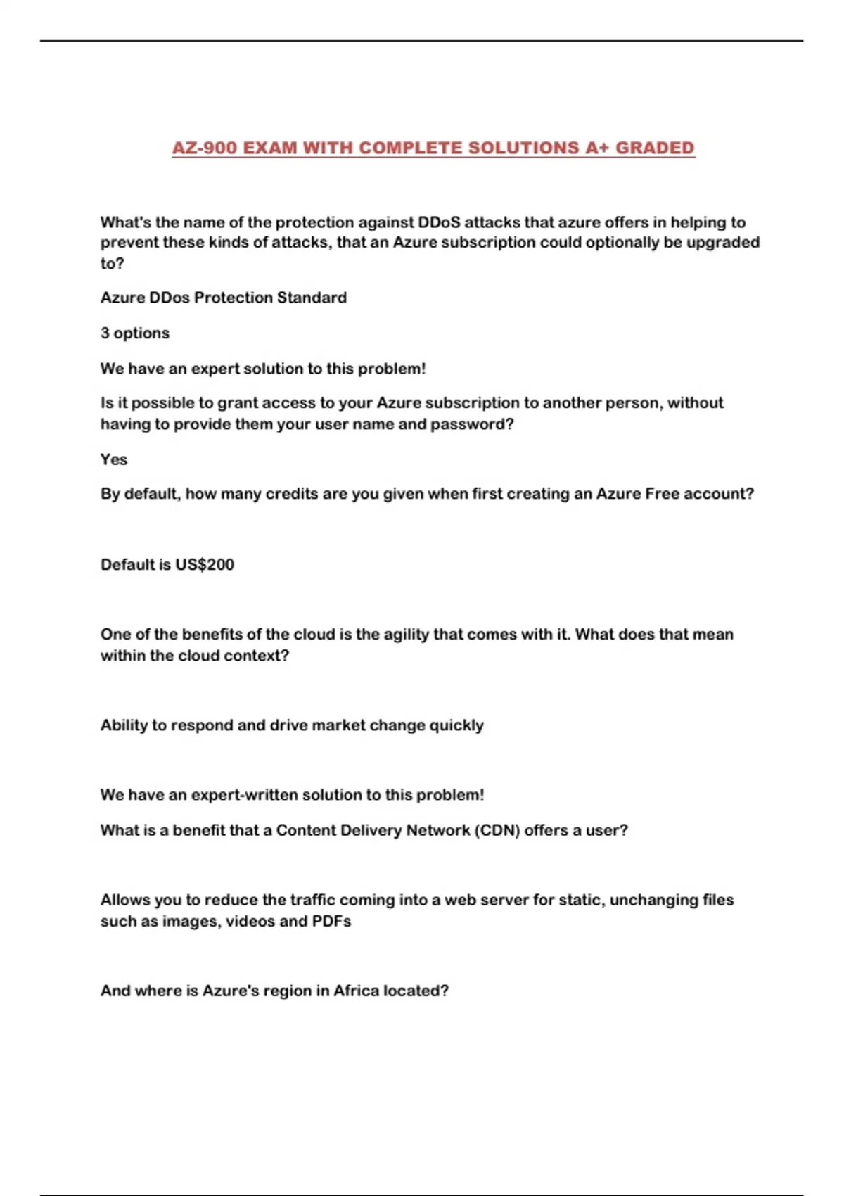 AZ-900 EXAM WITH COMPLETE SOLUTIONS A+ GRADED...