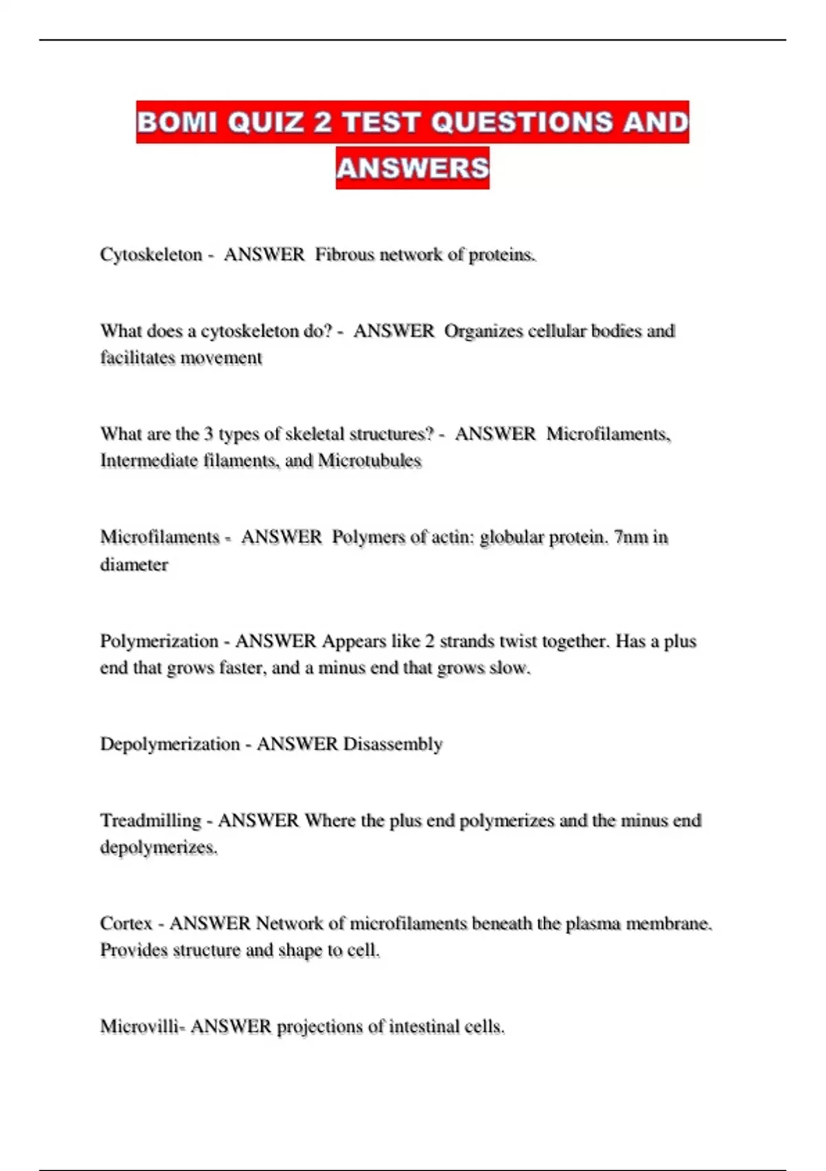 What are the 3 types of skeletal structures? - ANSWER Microfilaments,
