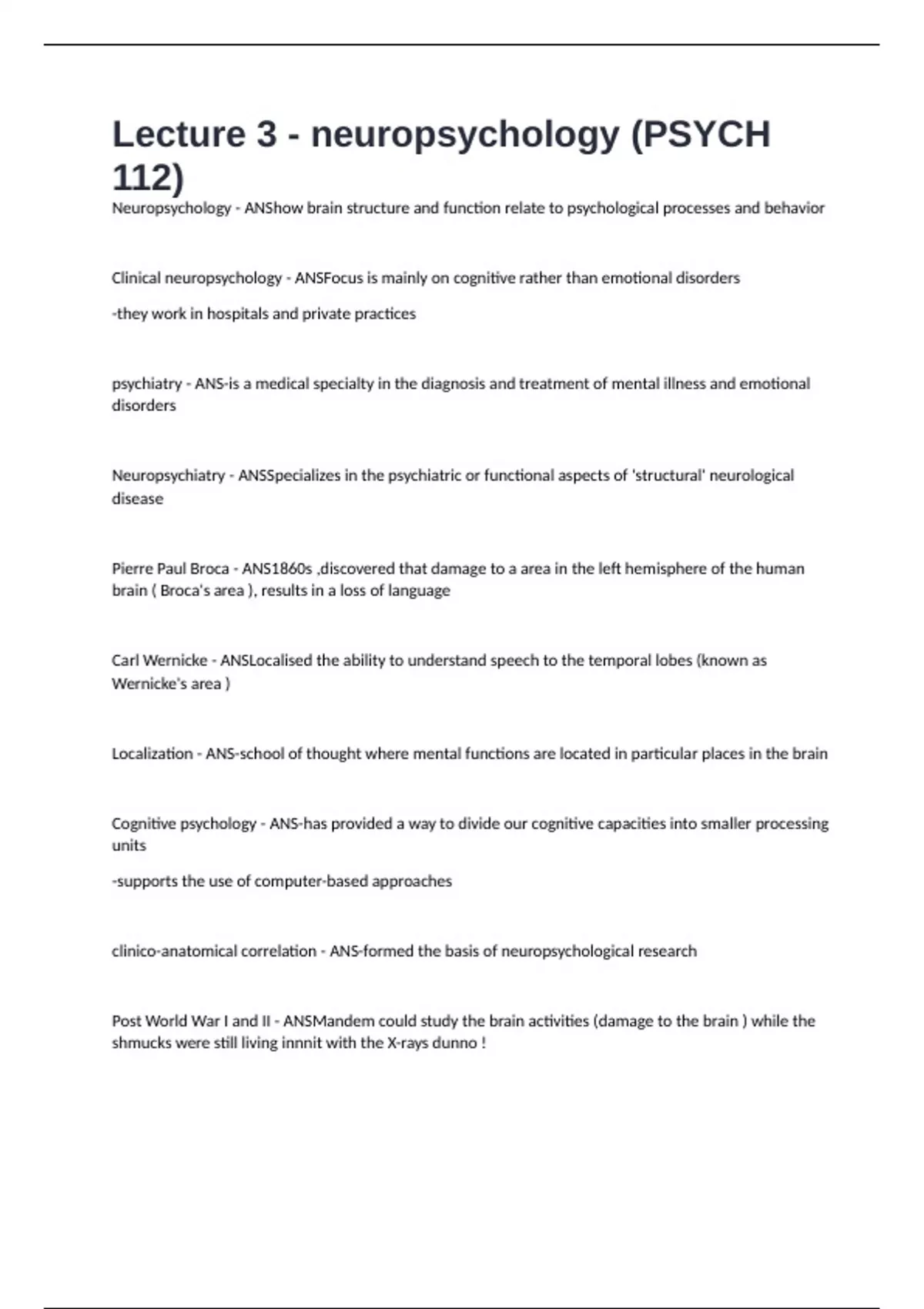 Lecture 3 - neuropsychology (PSYCH