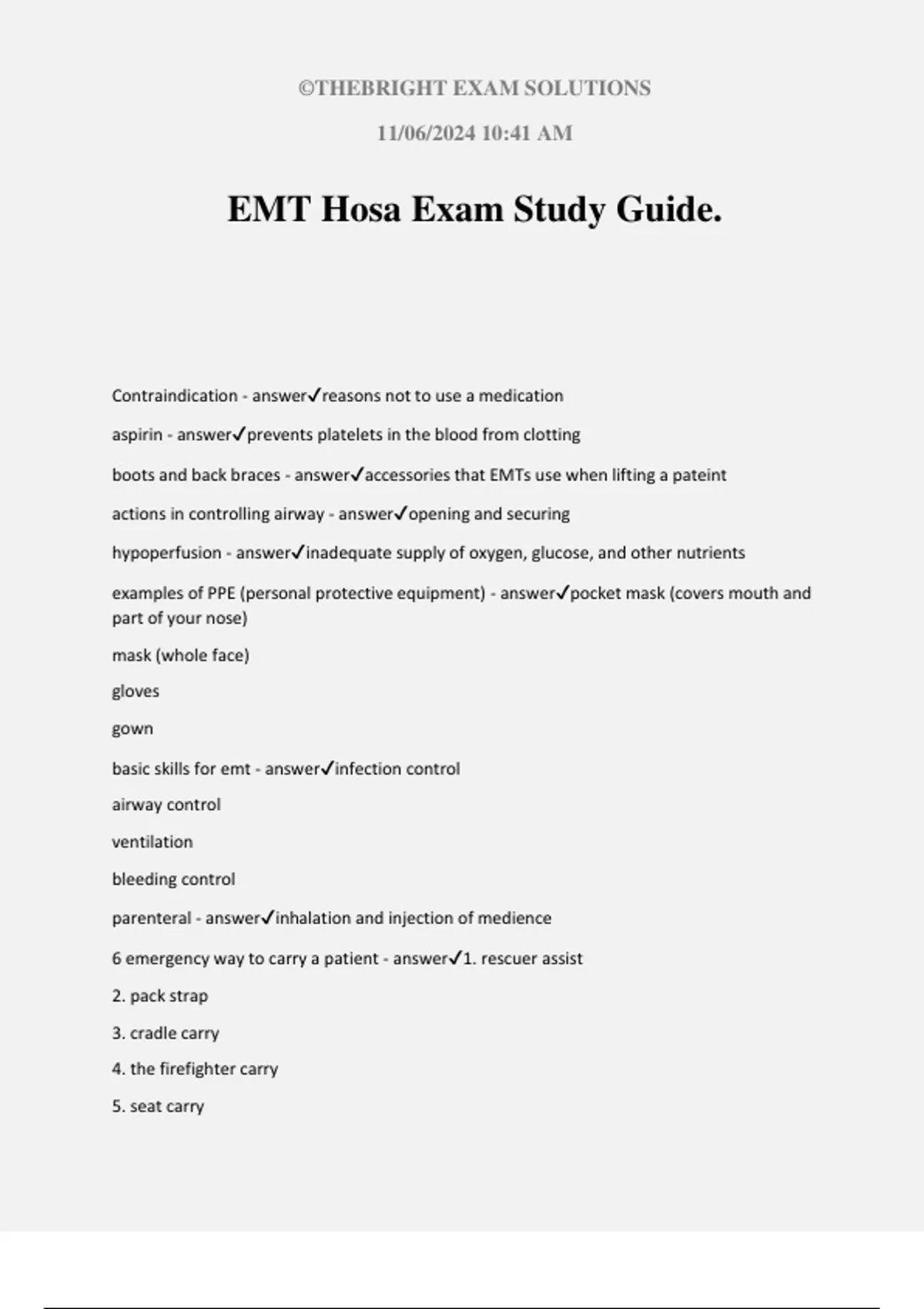 EMT Hosa Exam Study Guide.
