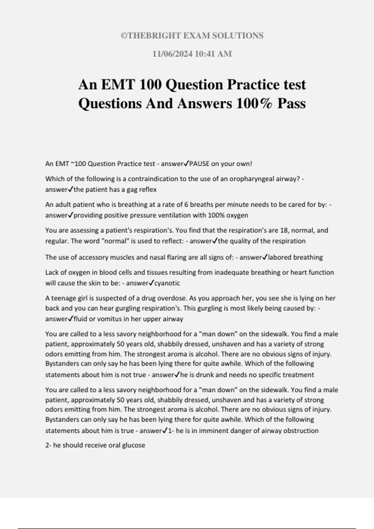 An EMT ~100 Question Practice test - answer✔PAUSE on your own!