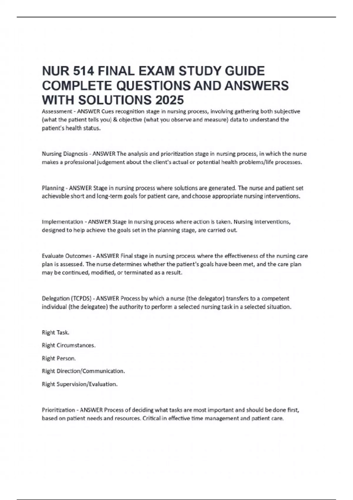 NUR 514 FINAL EXAM STUDY GUIDE COMPLETE QUESTIONS AND ANSWERS WITH SOLUTIONS 2025