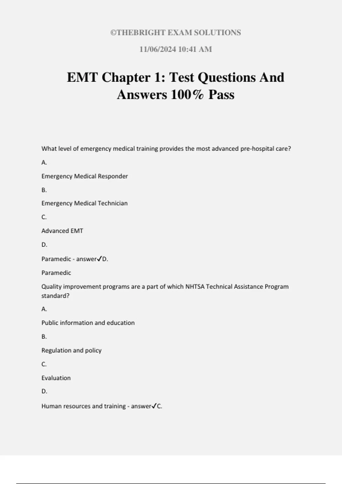 Paramedic - answer✔D.