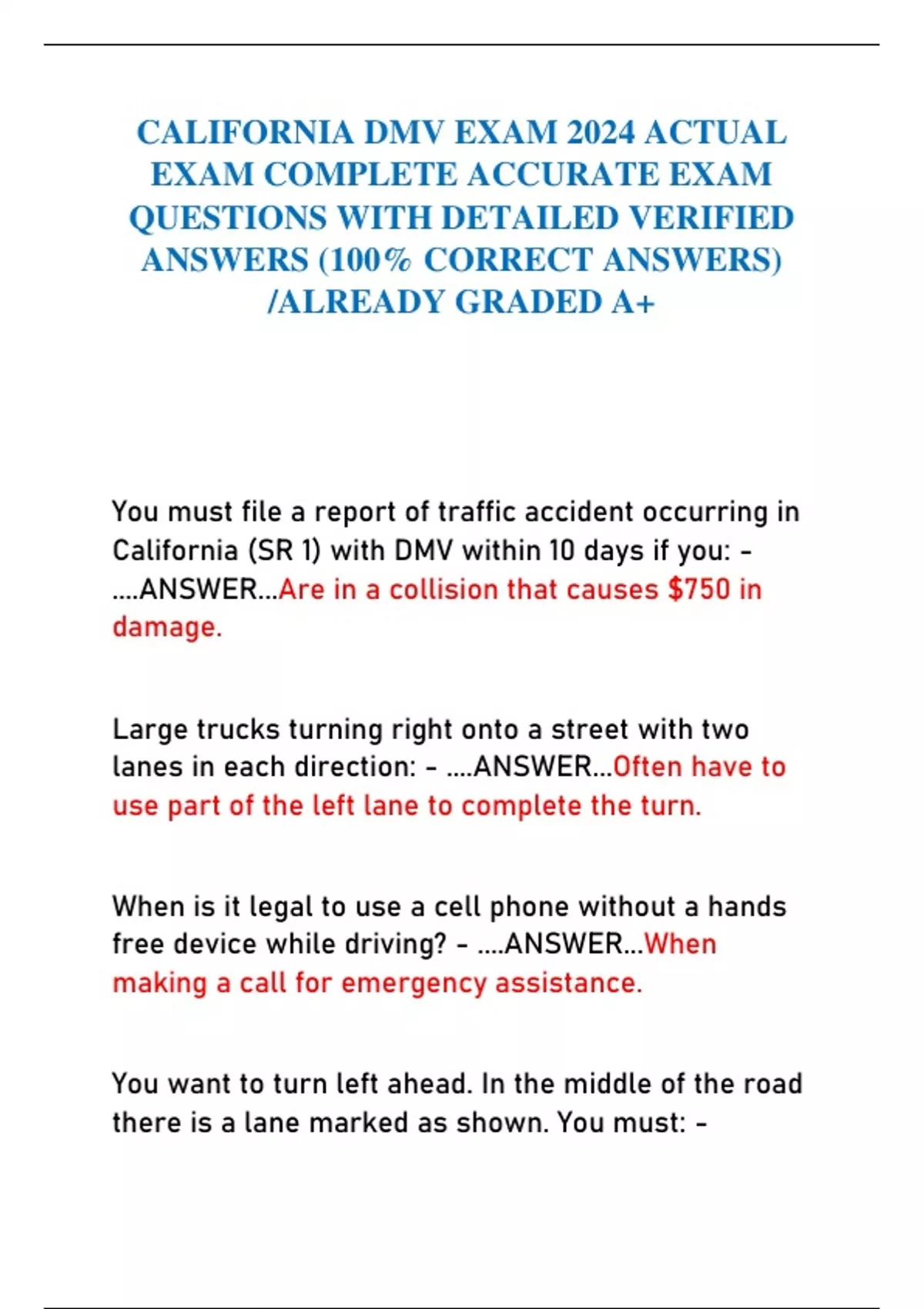 CALIFORNIA DMV EXAM 2024 ACTUAL