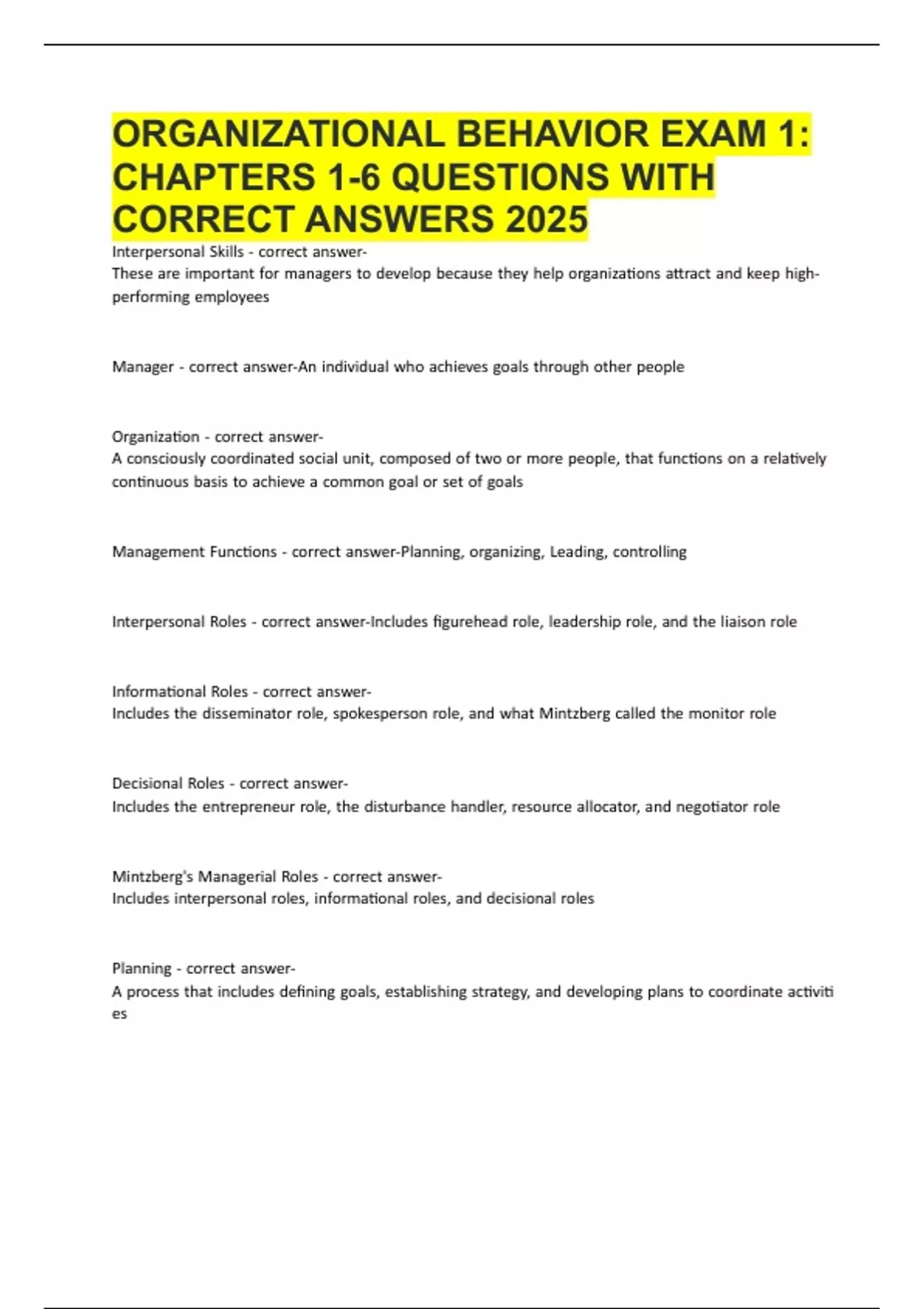 , OrganizationalHBehaviorH-HcorrectHanswer-