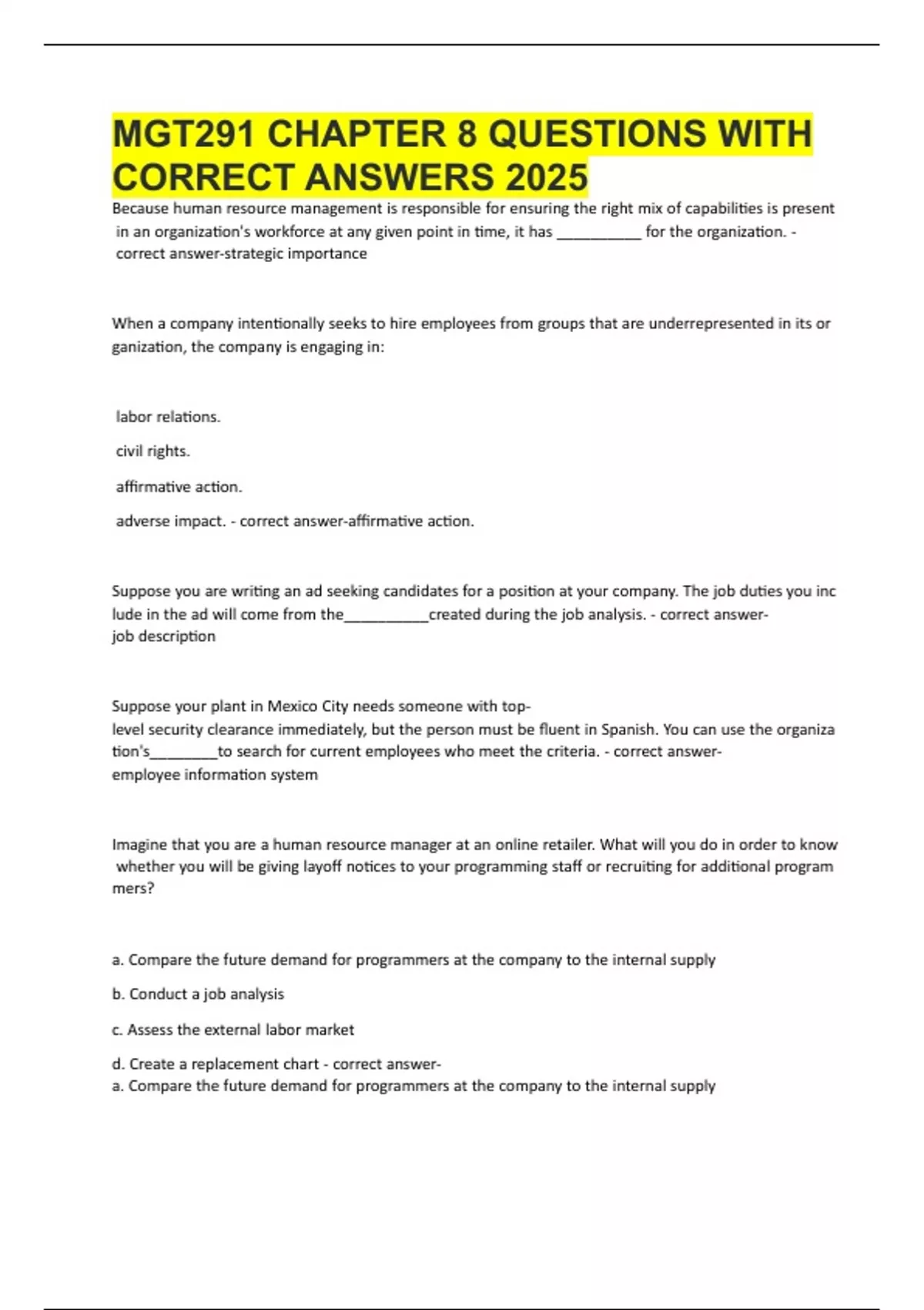 CORRECT ANSWERS 2025