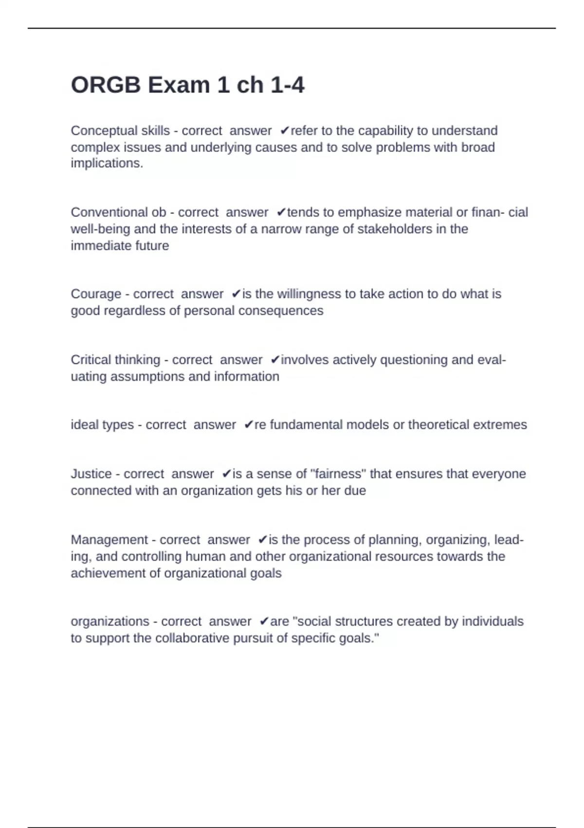 Conceptual skills - correct answer ✔refer to the capability to understand
