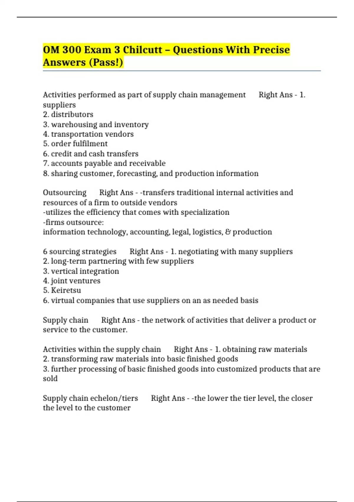 6 sourcing strategies Right Ans - 1. negotiating with many suppliers