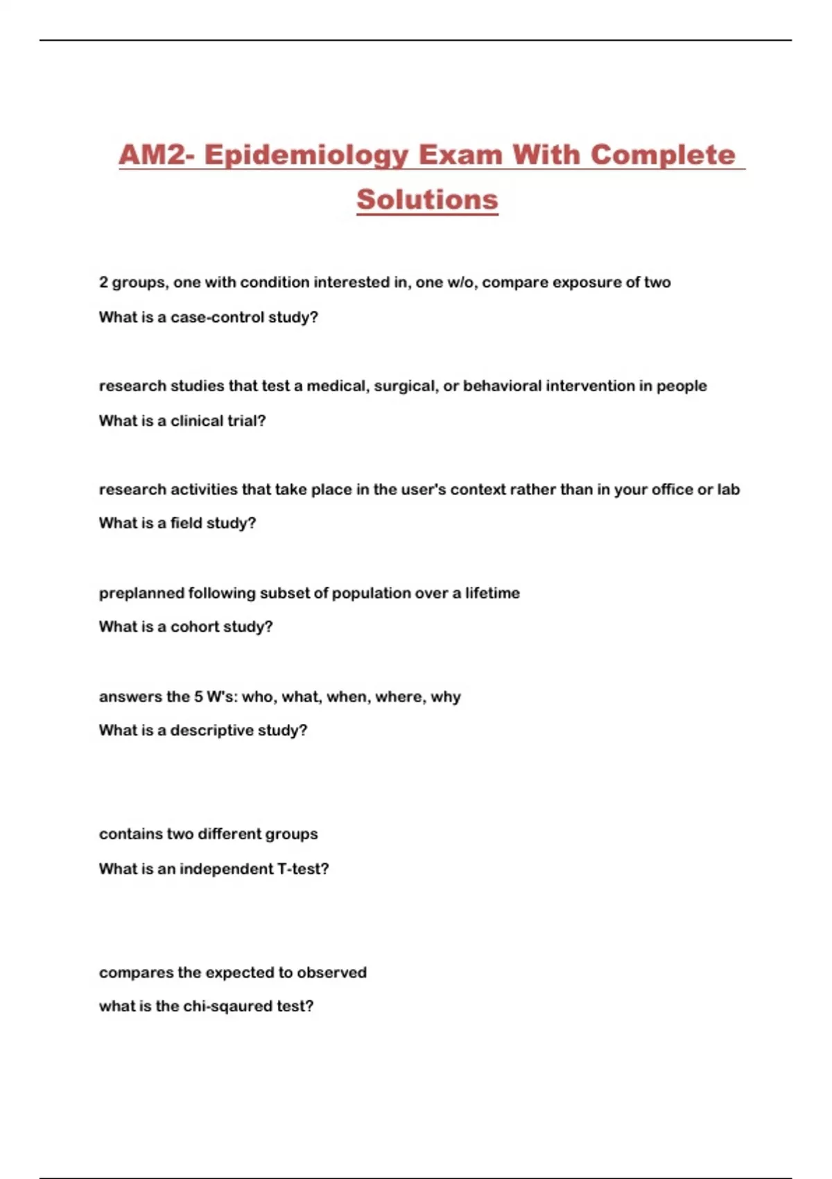 AM2- Epidemiology Exam With Complete
