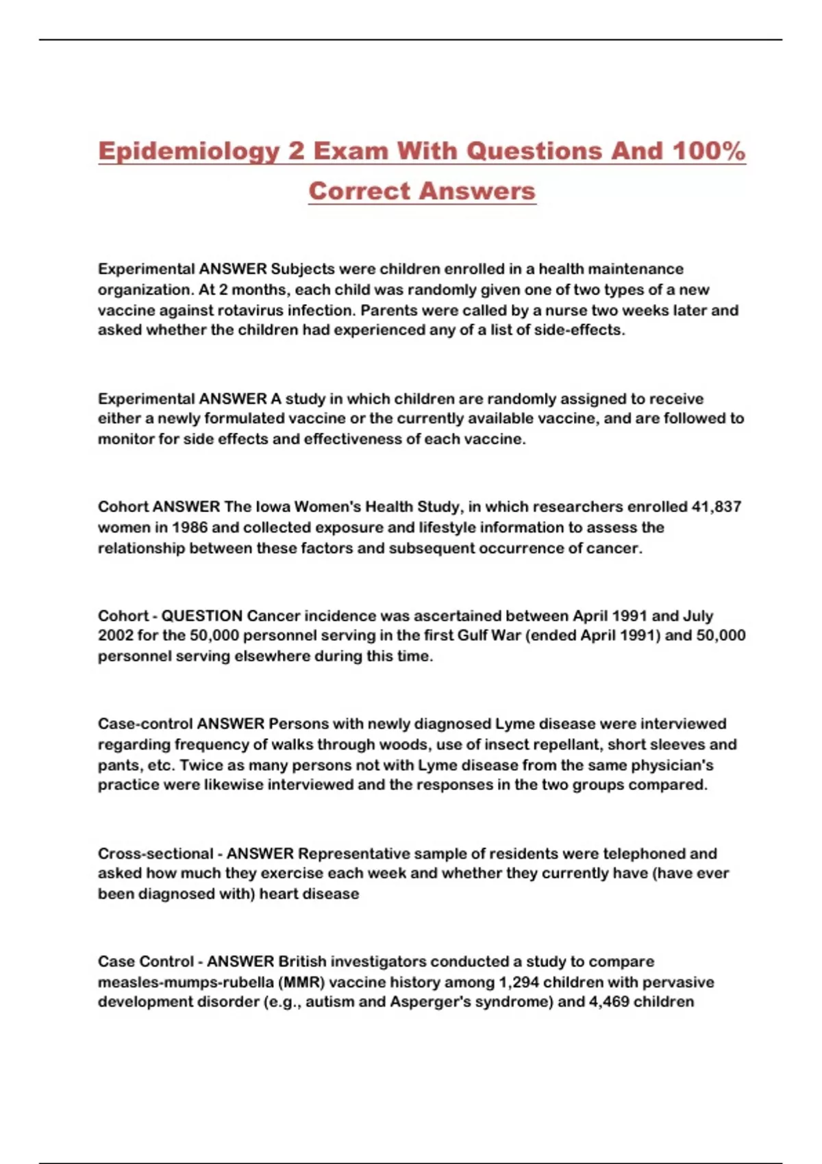 Epidemiology 2 Exam With Questions And 100%