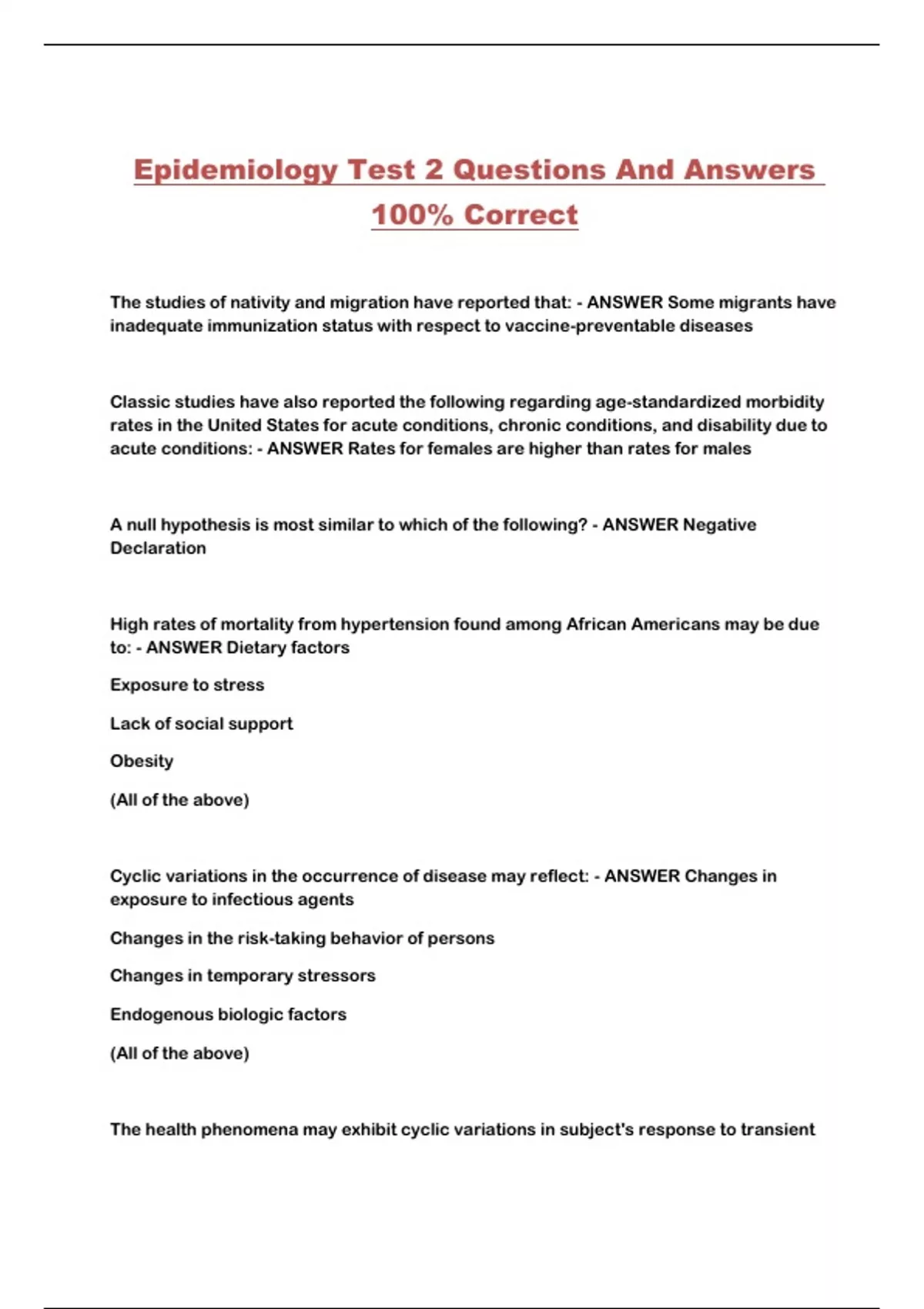 Epidemiology Test 2 Questions And Answers