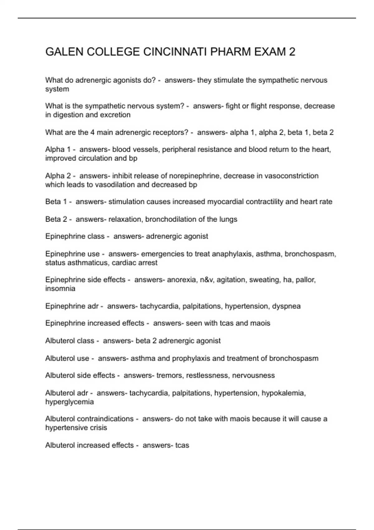 GALEN COLLEGE CINCINNATI PHARM EXAM 2