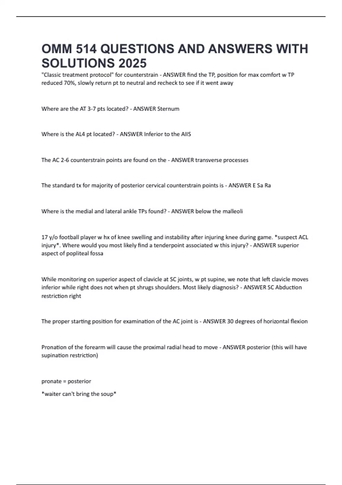 "Classic treatment protocol" for counterstrain - ANSWER find the TP, position for max comfort w TP