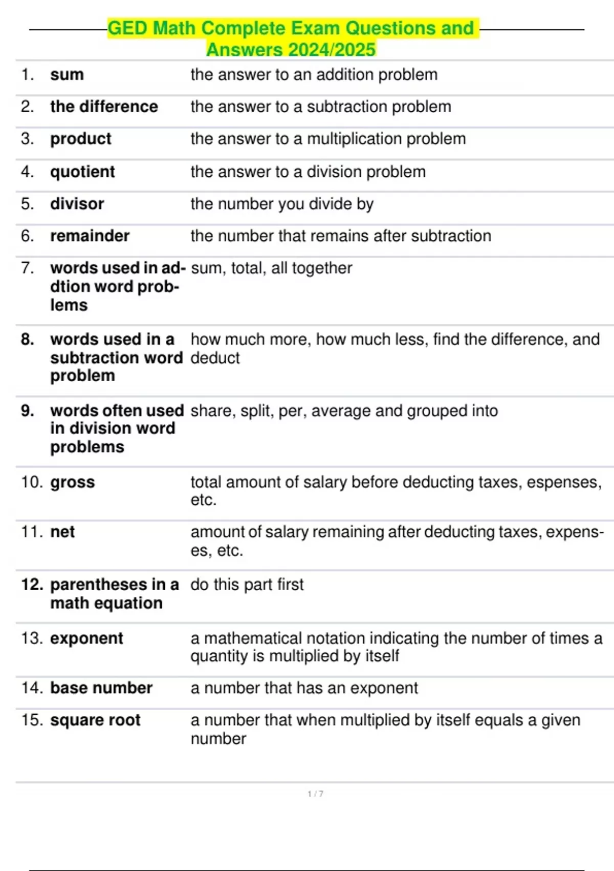 , GED Math Complete Exam Questions and Answers