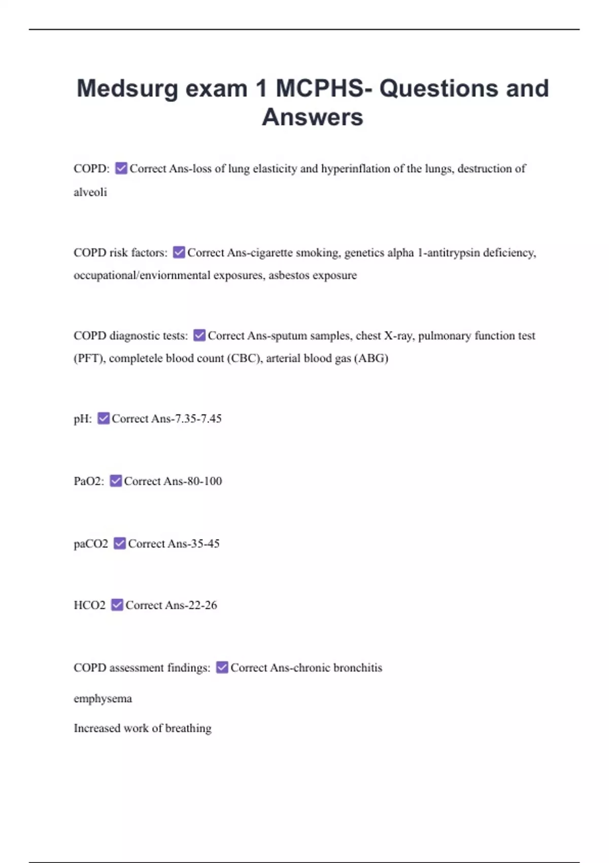 COPD assessment findings: Correct Ans-chronic bronchitis