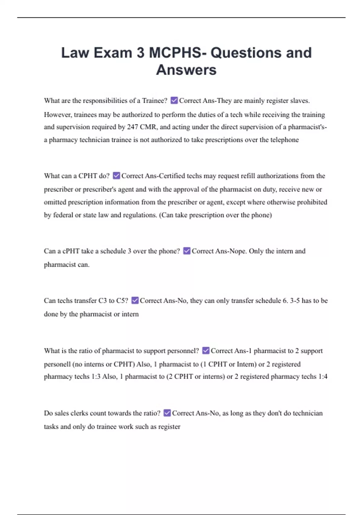 Can a cPHT take a schedule 3 over the phone? Correct Ans-Nope. Only the intern and