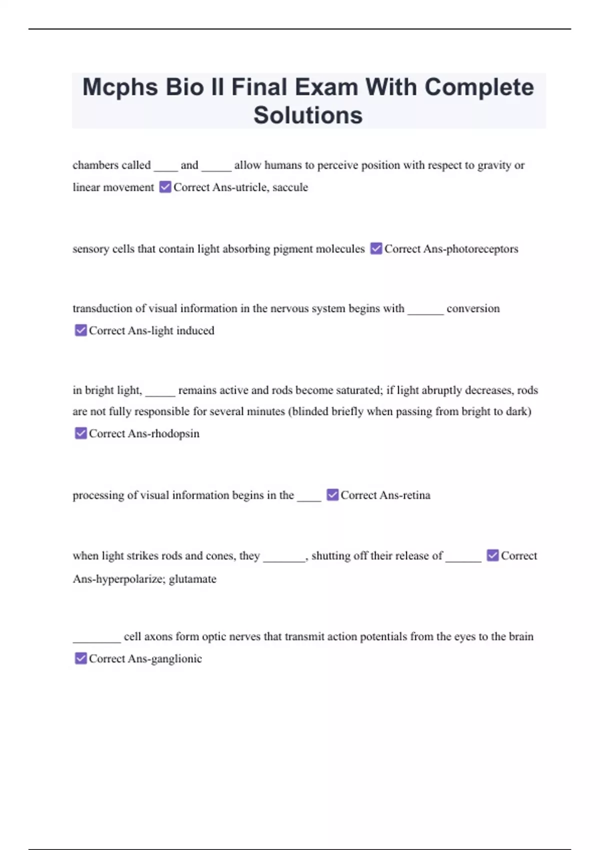 sensory cells that contain light absorbing pigment molecules Correct Ans-photoreceptors