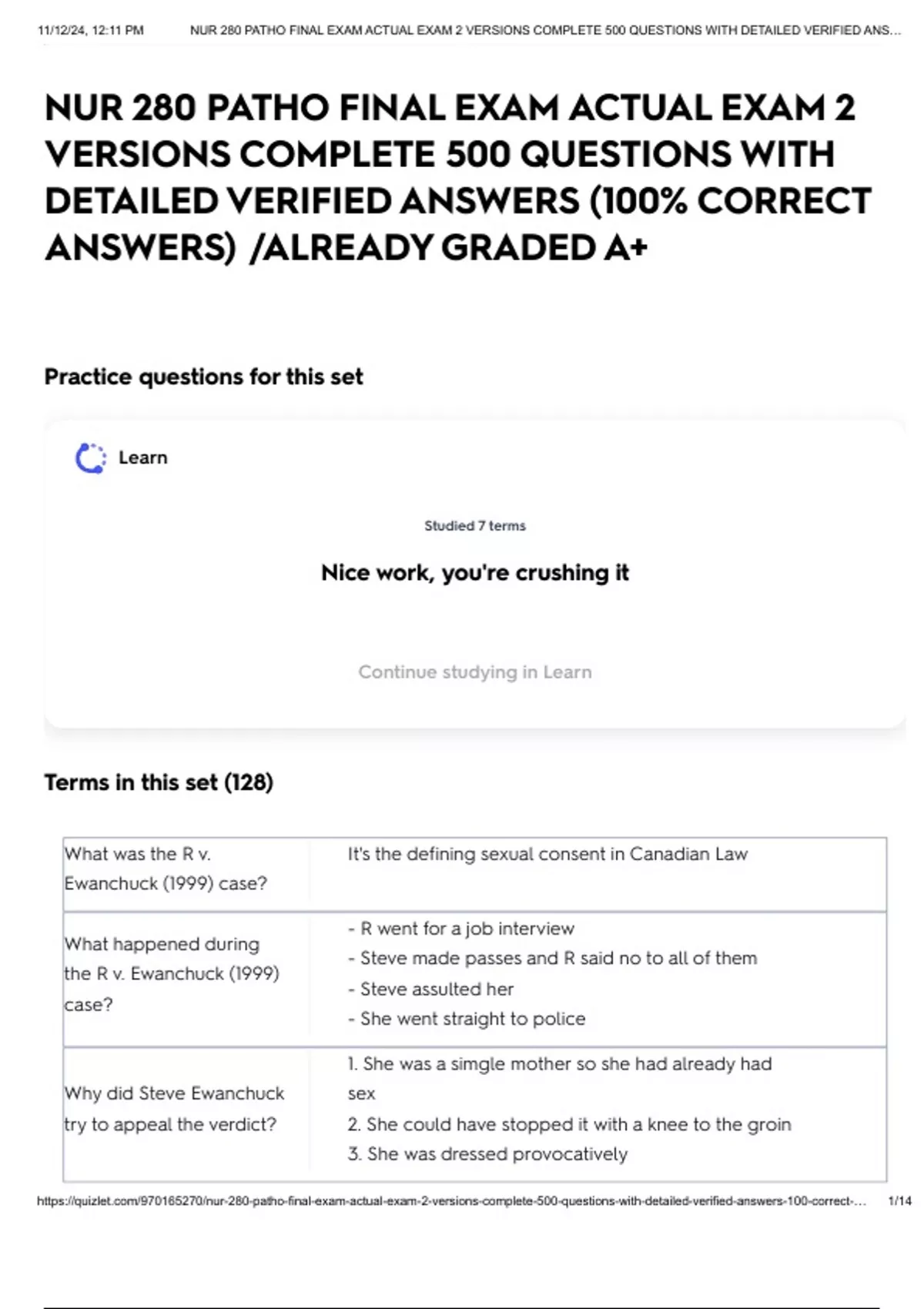 , 11/12/24, 12:11 PM NUR 280 PATHO FINAL EXAM ACTUAL EXAM 2 VERSIONS COMPLETE 500 QUESTIONS WITH DETAILED VERIFIED ANS…