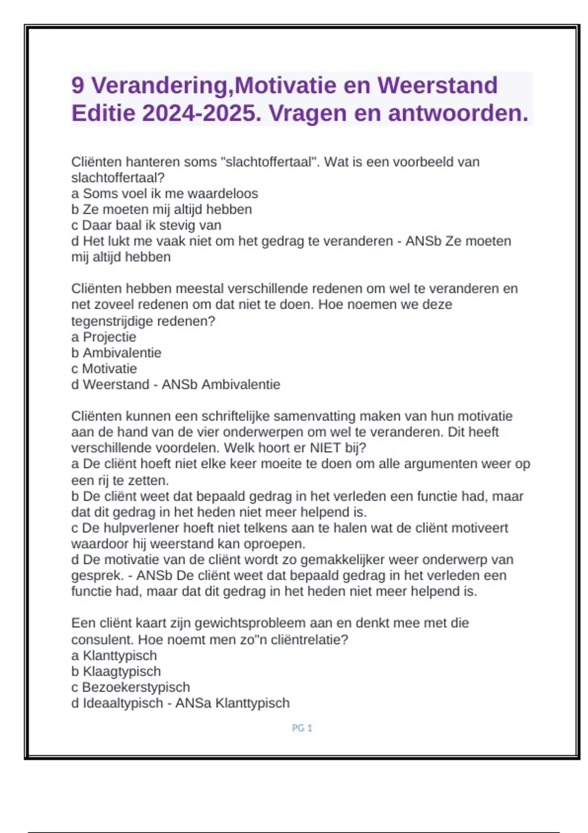 c De hulpverlener hoeft niet telkens aan te halen wat de cliënt motiveert