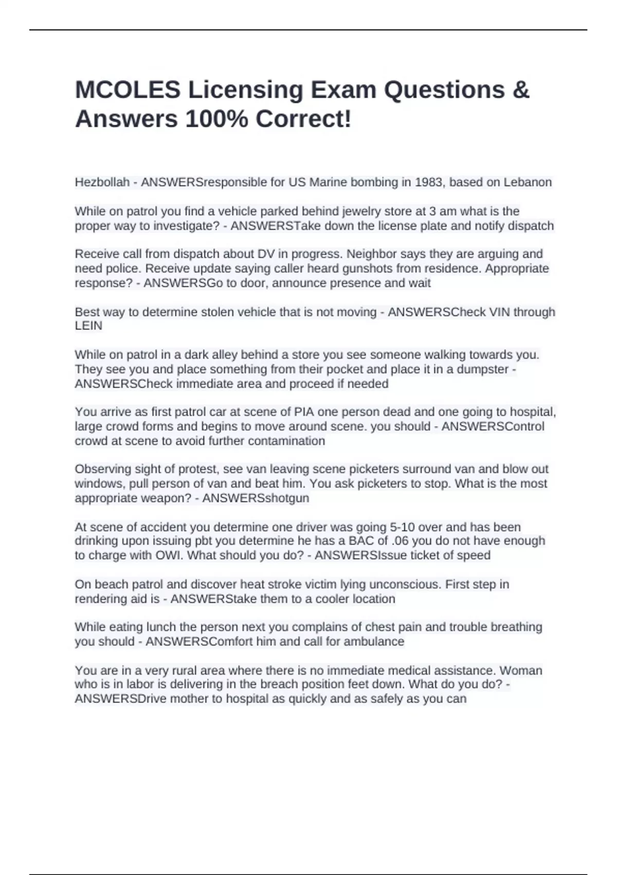 MCOLES Licensing Exam Questions & Answers 100% Correct!