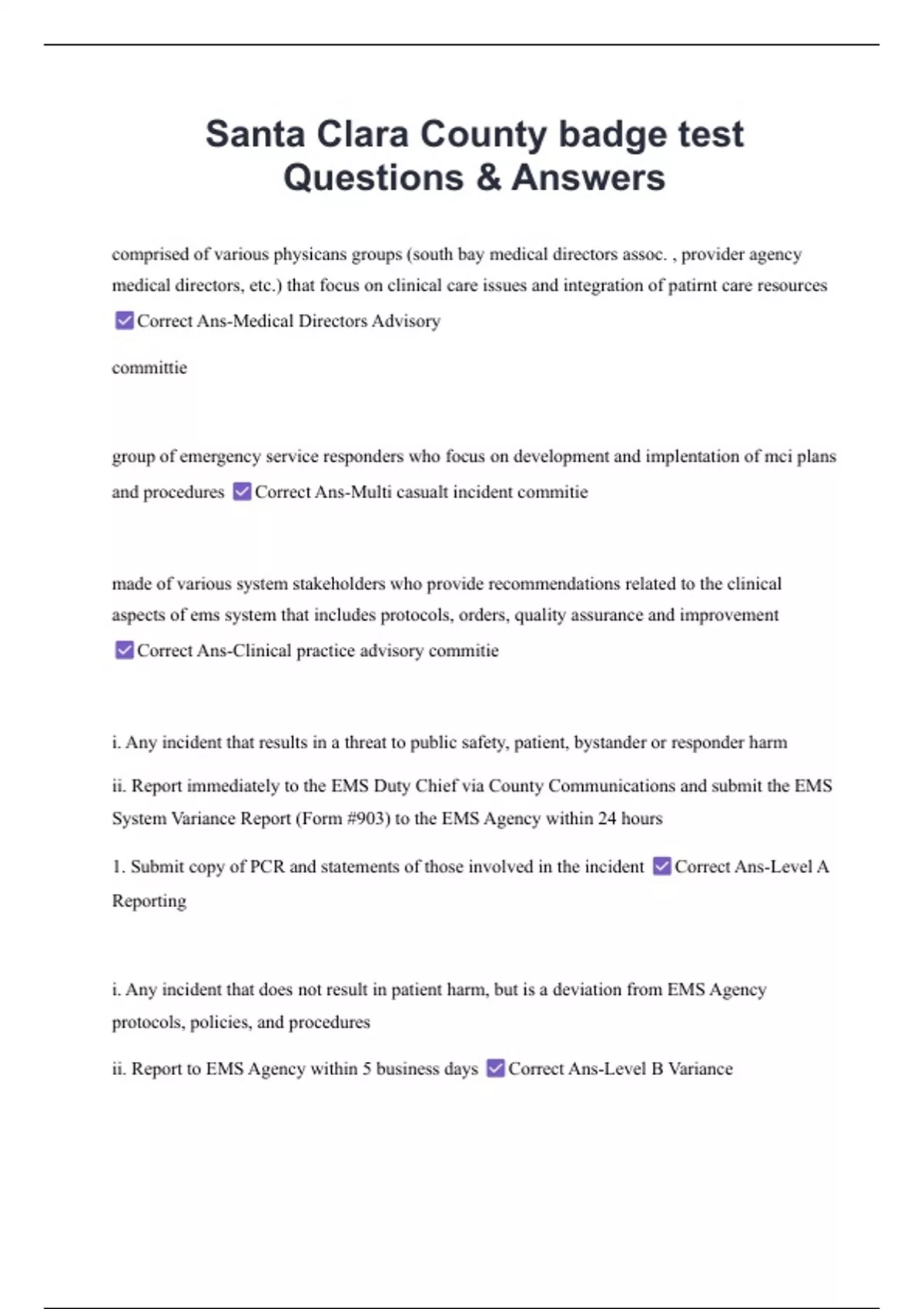 ii. Report to EMS Agency within 5 business days Correct Ans-Level B Variance