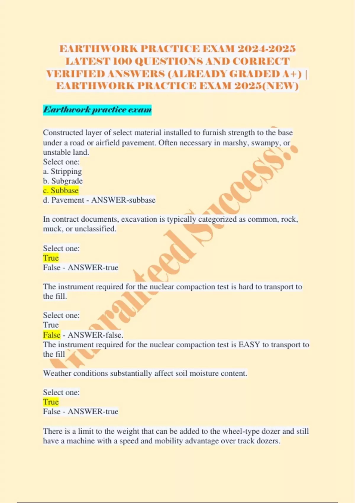 EARTHWORK PRACTICE EXAM 2025(NEW)