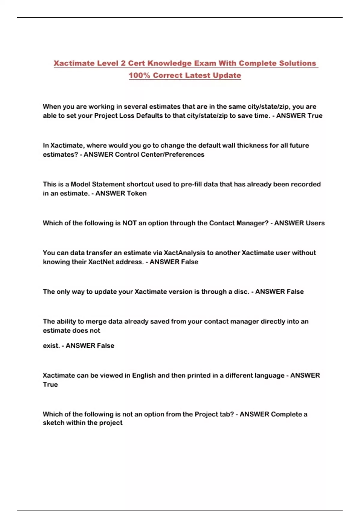 Xactimate Level 2 Cert Knowledge Exam With Complete Solutions