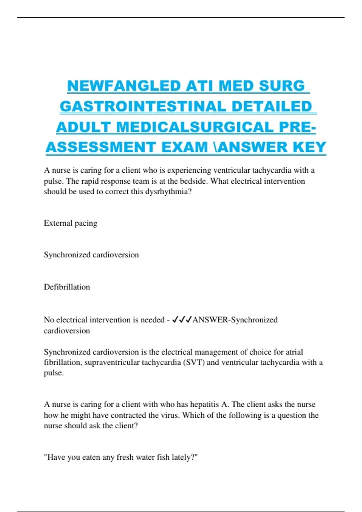 NEWFANGLED ATI MED SURG GASTROINTESTINAL DETAILED ADULT MEDICALSURGICAL PREASSESSMENT EXAM ANSWER KEY