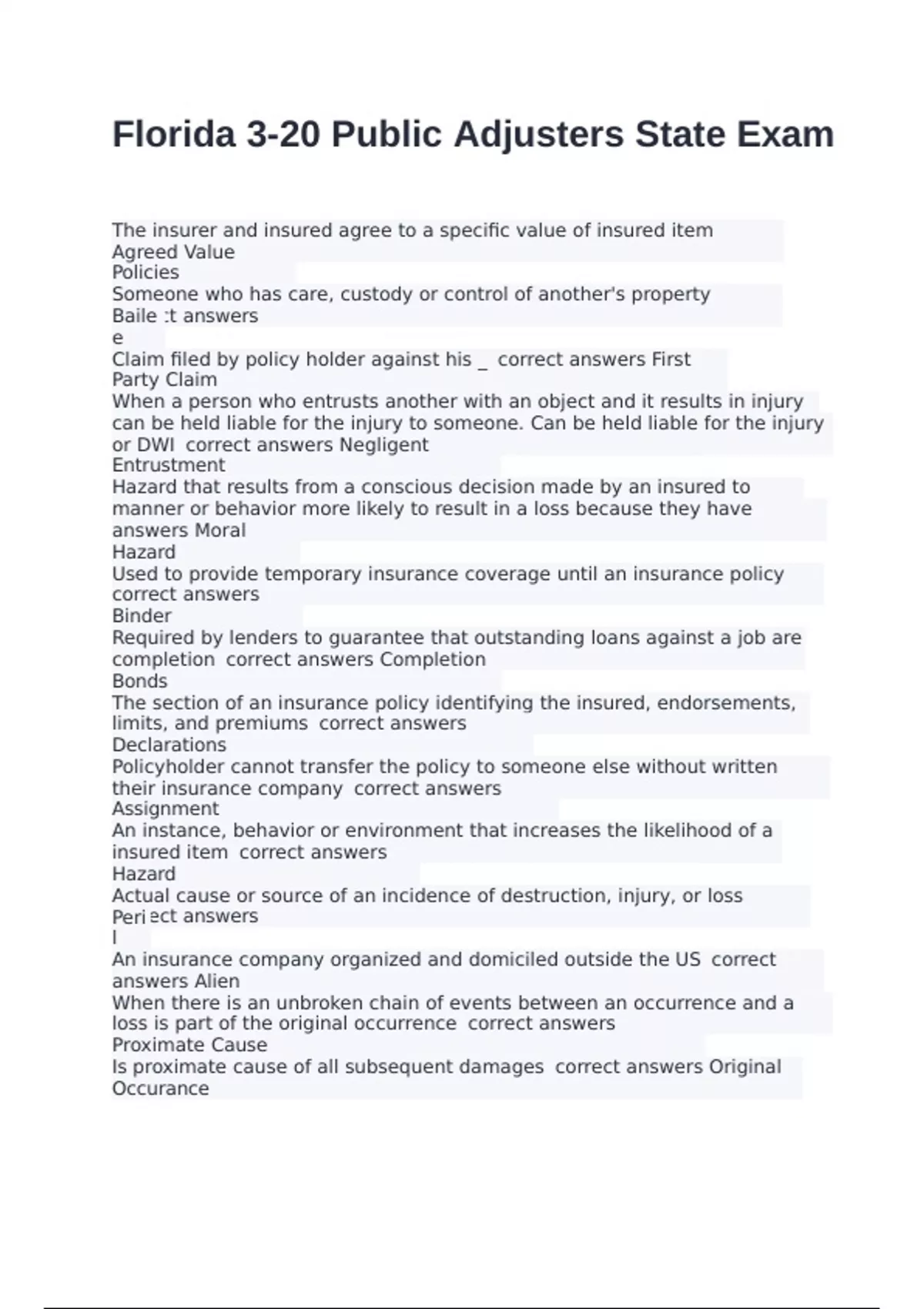 Florida 3-20 Public Adjusters State Exam with correct answers 2024