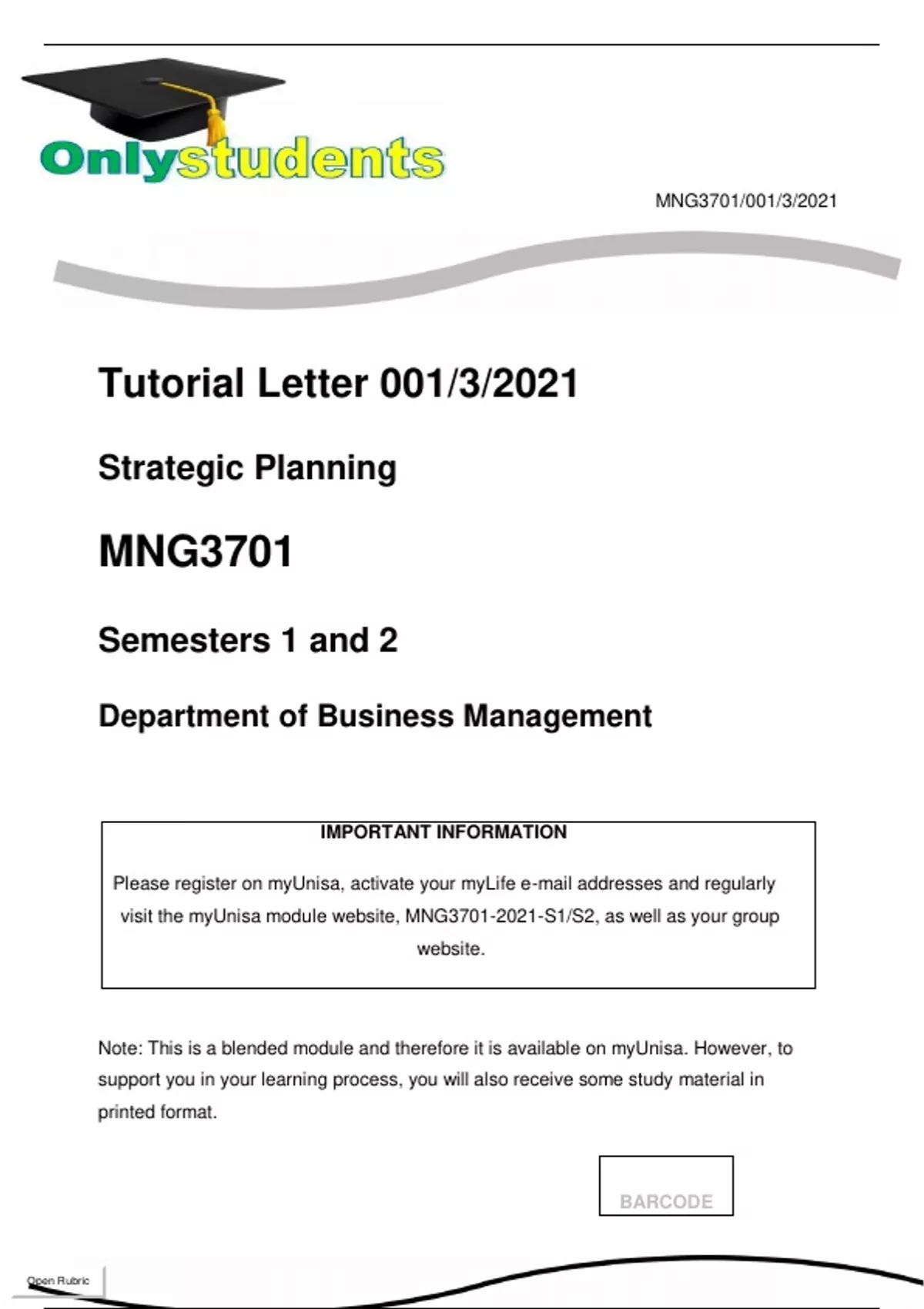 MNG3701 will provide you with an introduction to Strategic Planning, which is a vital component of