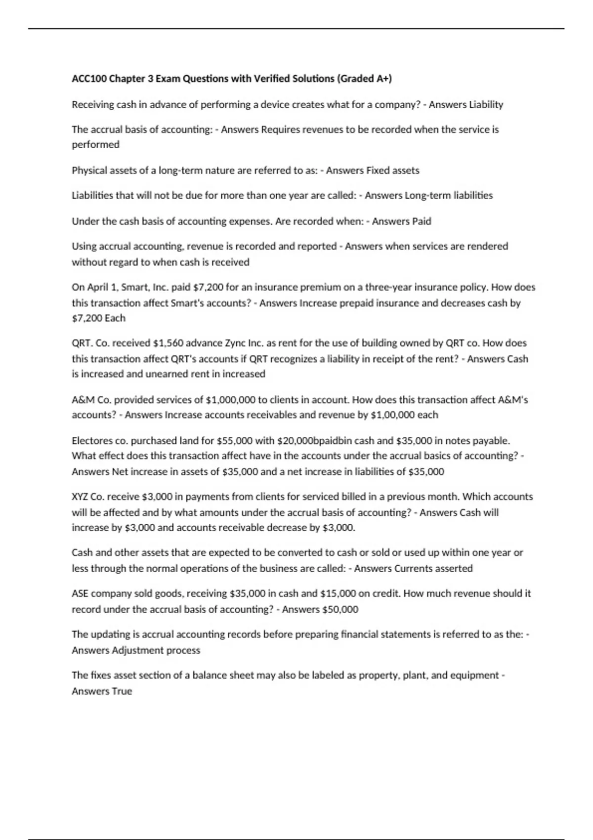 Answers True
