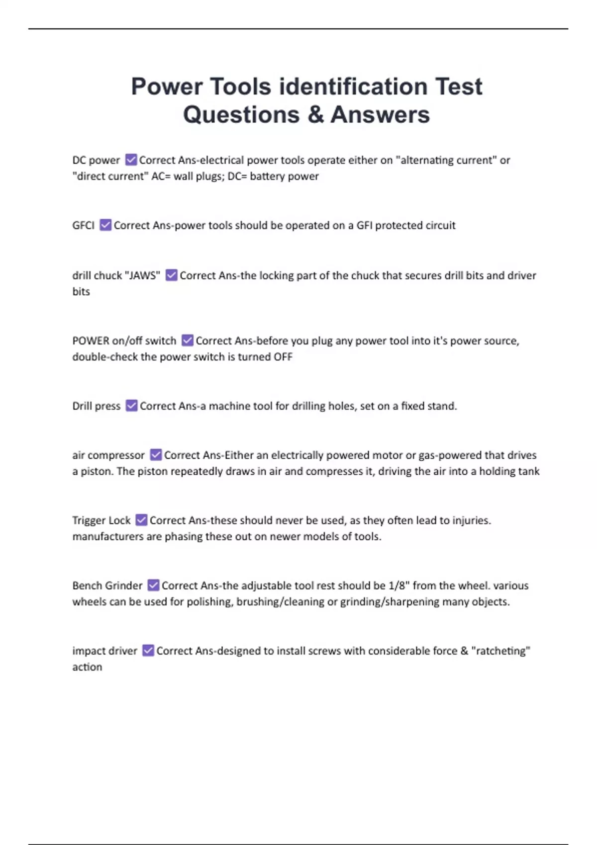 GFCI Correct Ans-power tools should be operated on a GFI protected circuit