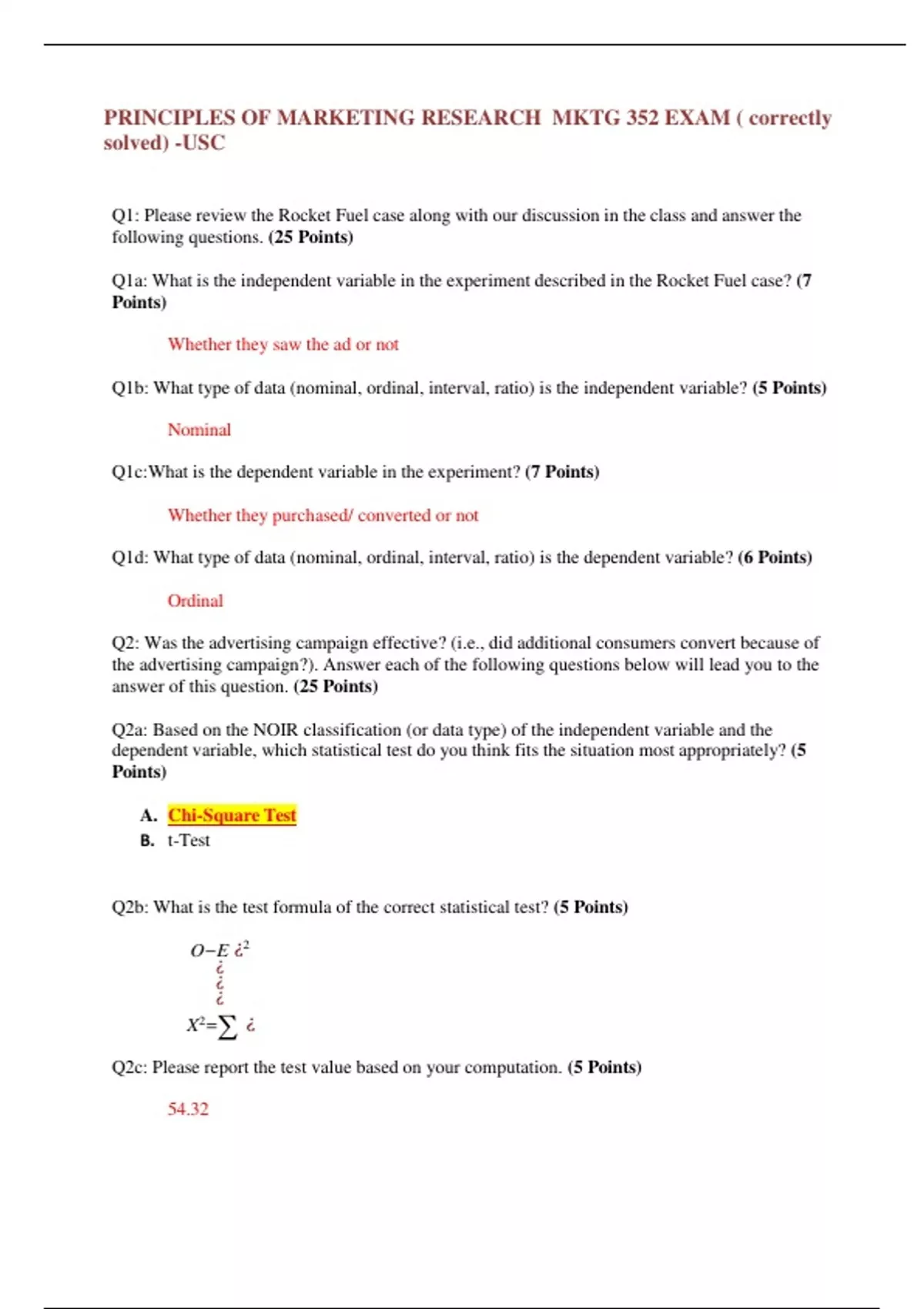 Q2c: Please report the test value based on your computation. (5 Points)