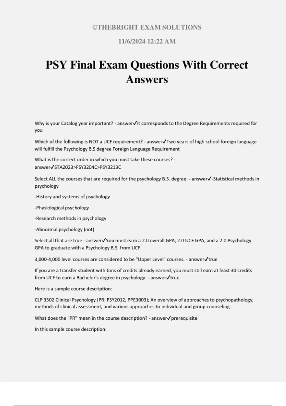 What are the prerequisites that must be taken before taking CLP 3302? - answer✔PSY 2012 and PPE