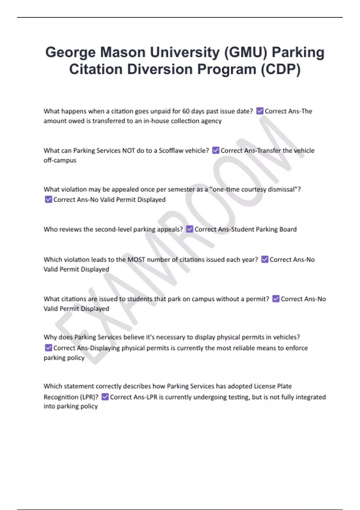 George Mason University (GMU) Parking Citation Diversion Program (CDP)