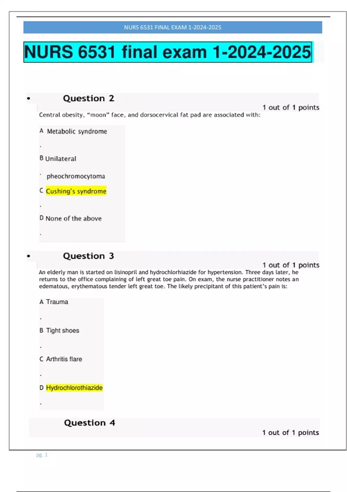 , NURS 6531 FINAL EXAM 1-2024-2025
