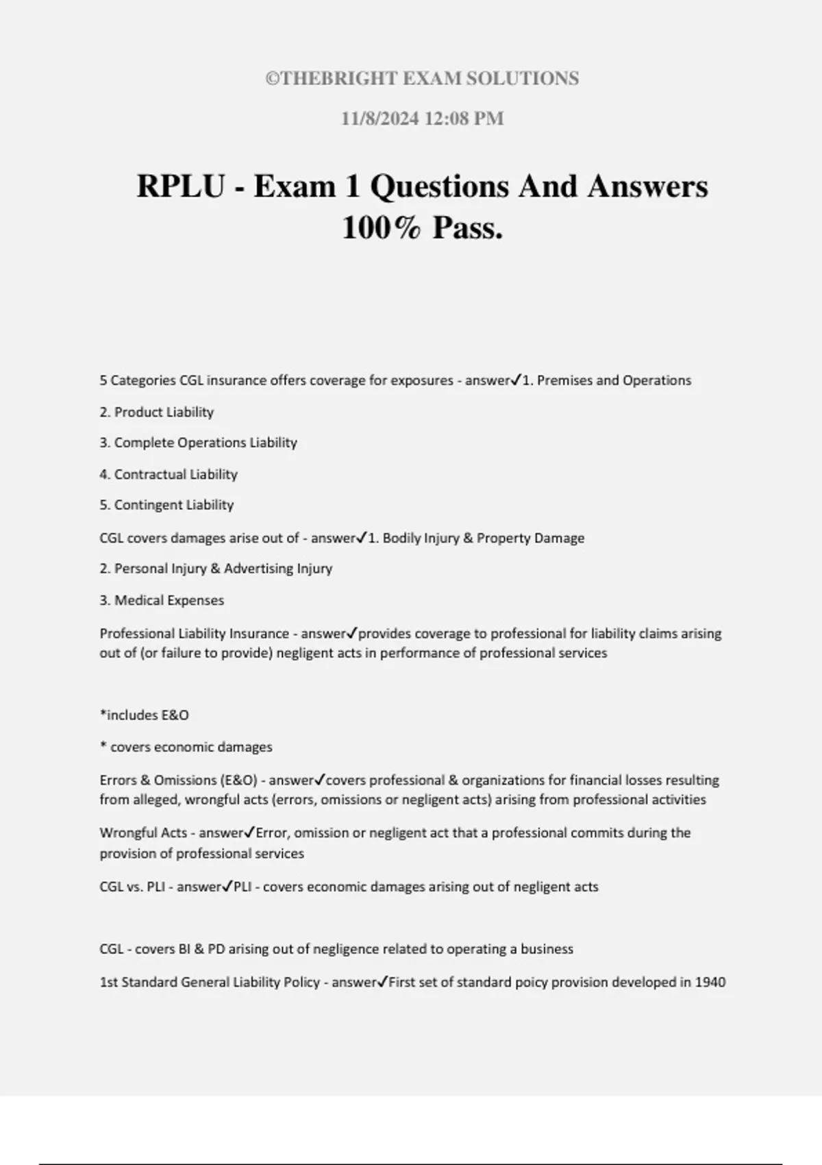 CGL vs. PLI - answer✔PLI - covers economic damages arising out of negligent acts