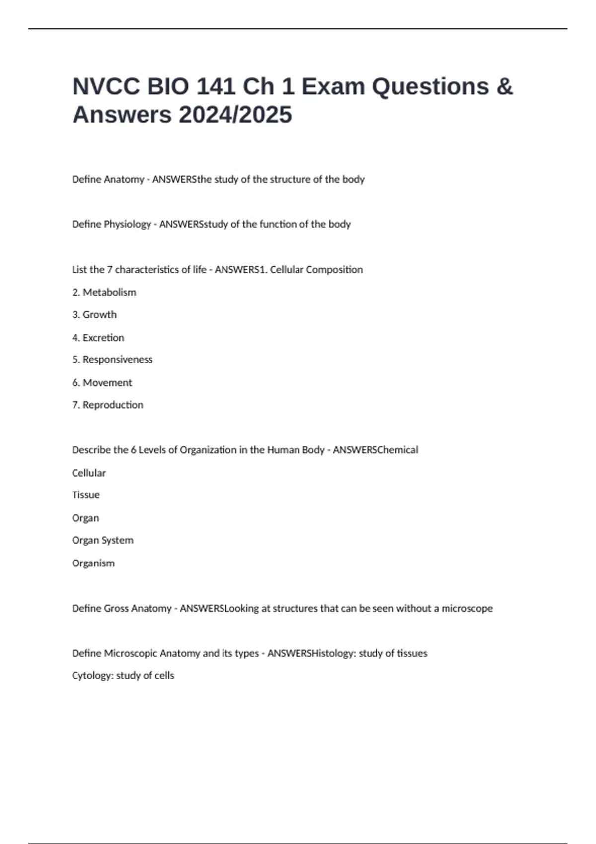 Describe the 6 Levels of Organization in the Human Body - ANSWERSChemical