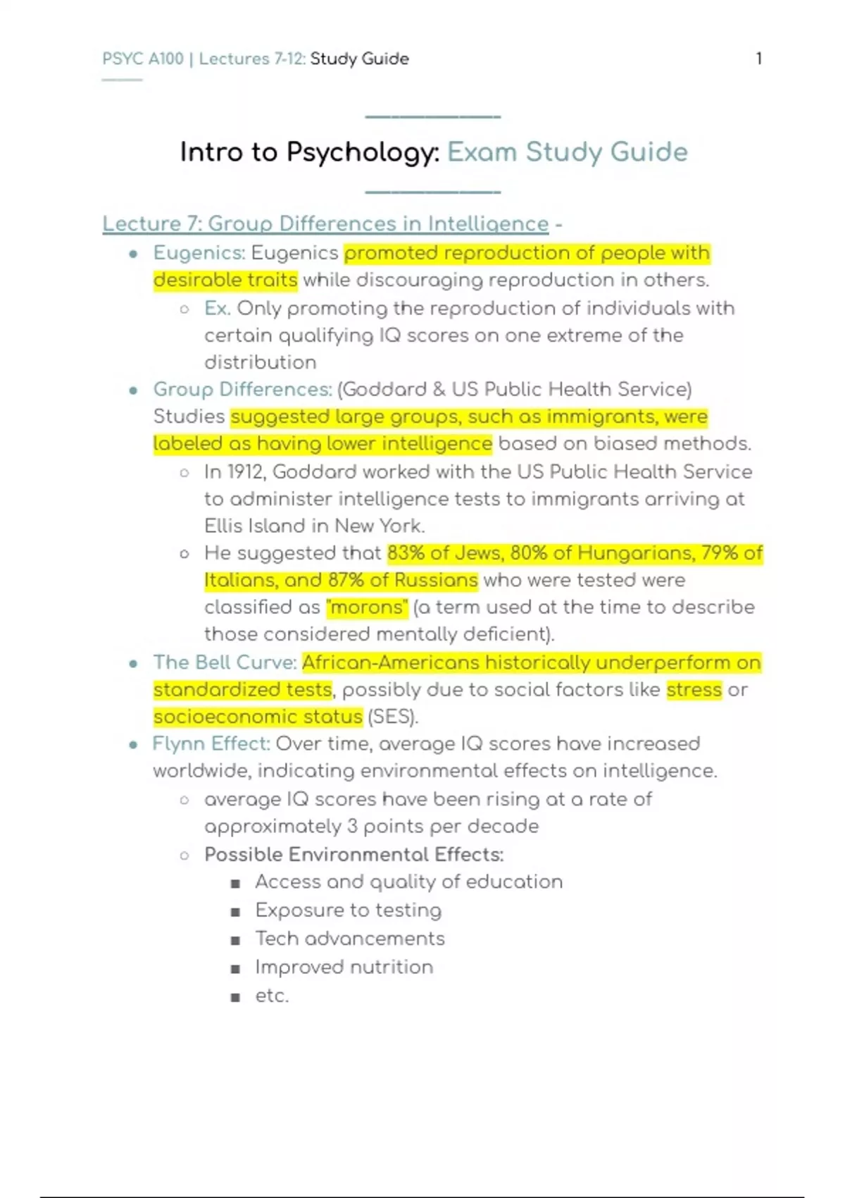 In-depth notes from PSYC A100 Lectures 7 - 12. Terms, definitions, examples, helpful acronyms, helpful pneumonics.