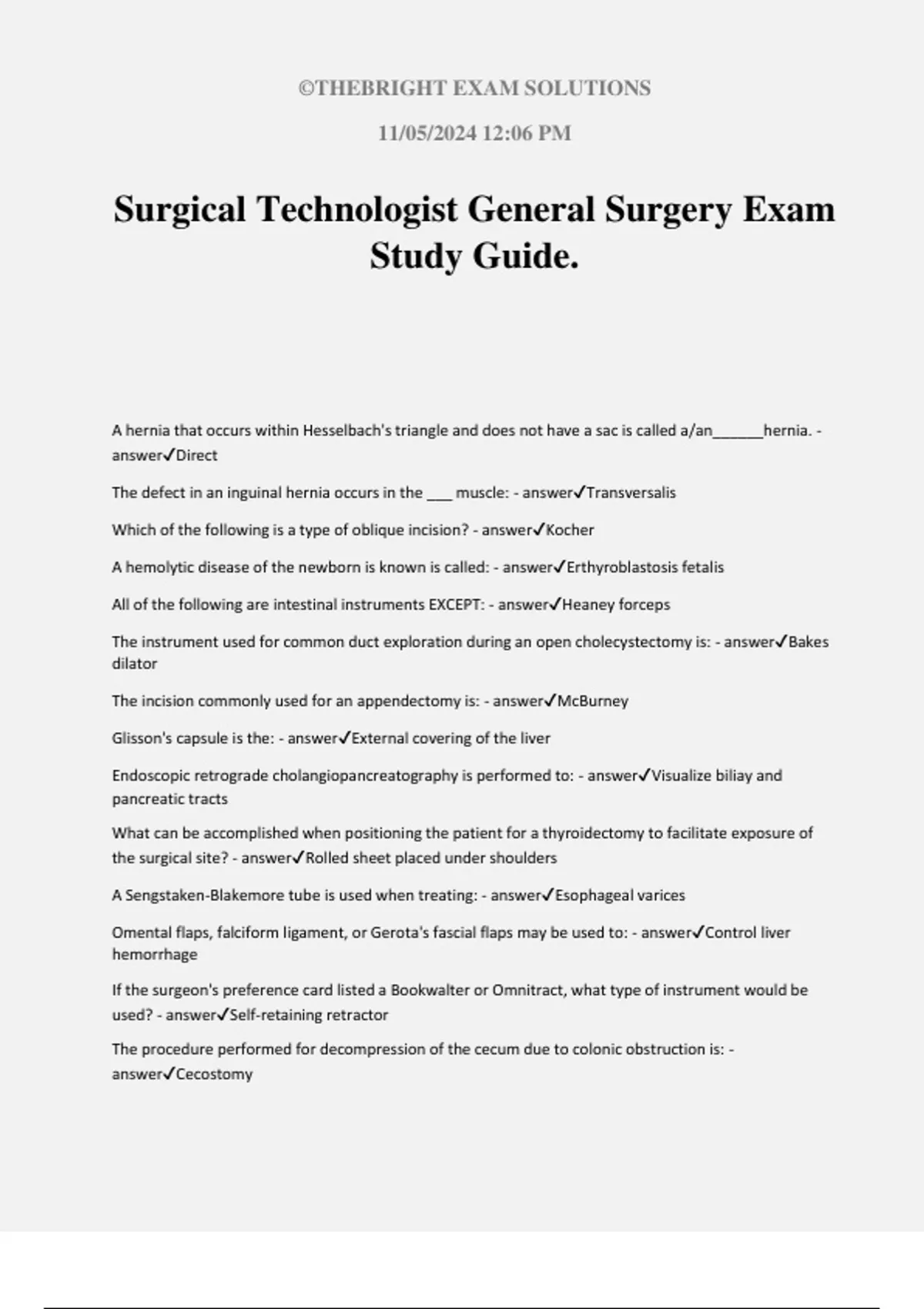 Surgical Technologist General Surgery Exam
