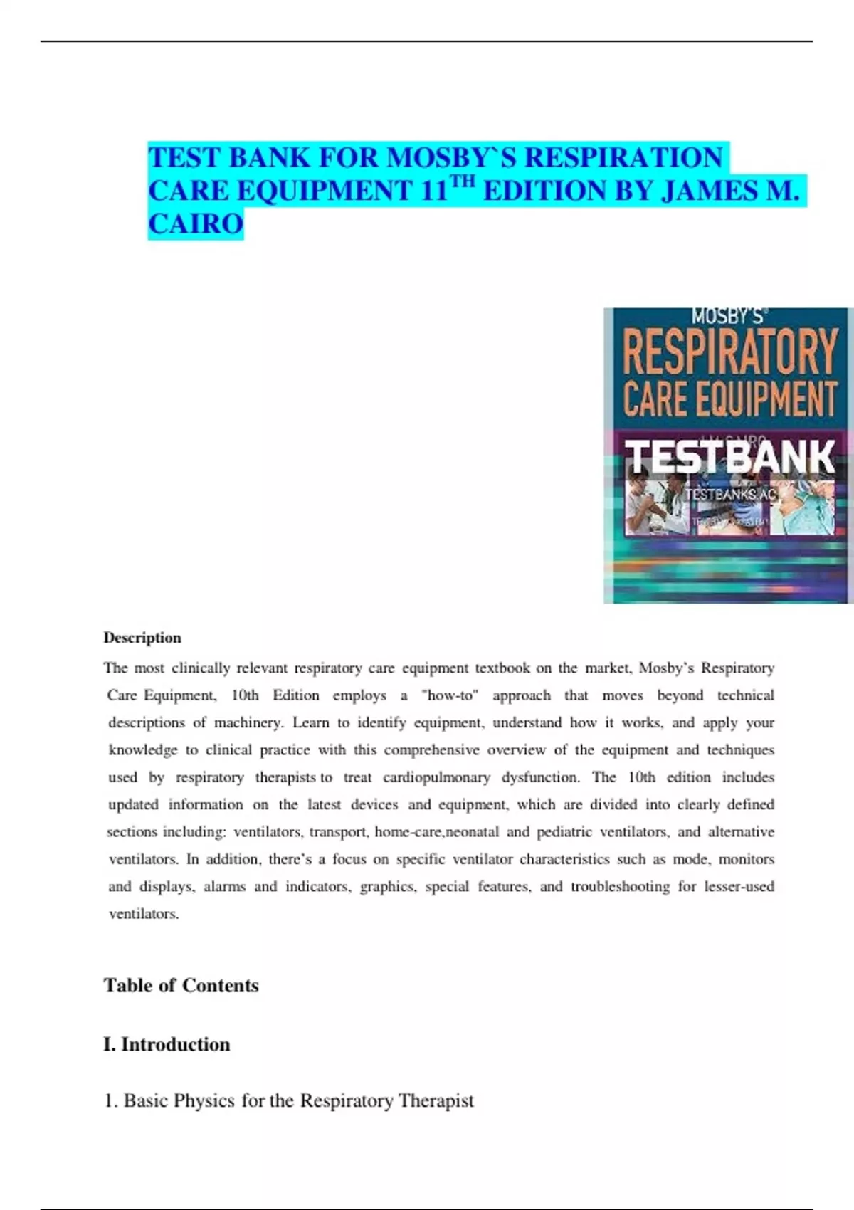 The most clinically relevant respiratory care equipment textbook on the market, Mosby’s Respiratory