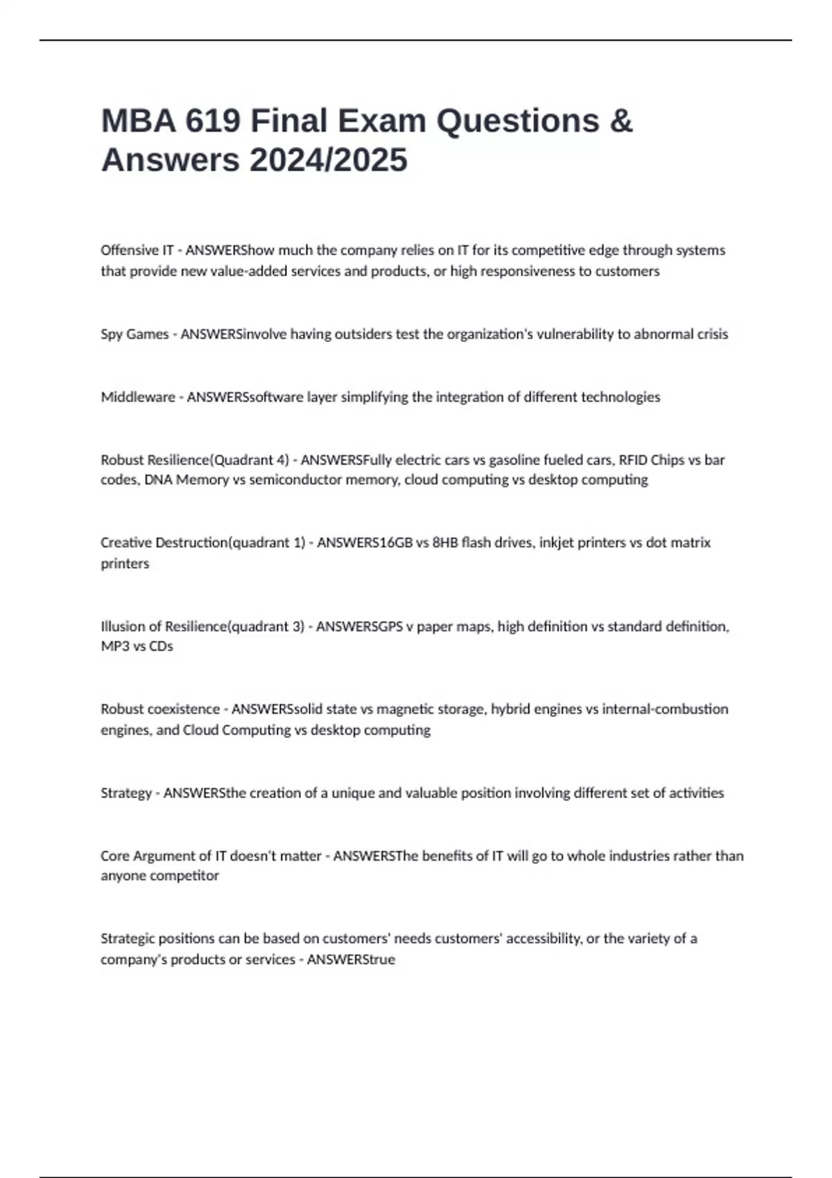 Robust Resilience(Quadrant 4) - ANSWERSFully electric cars vs gasoline fueled cars, RFID Chips vs bar