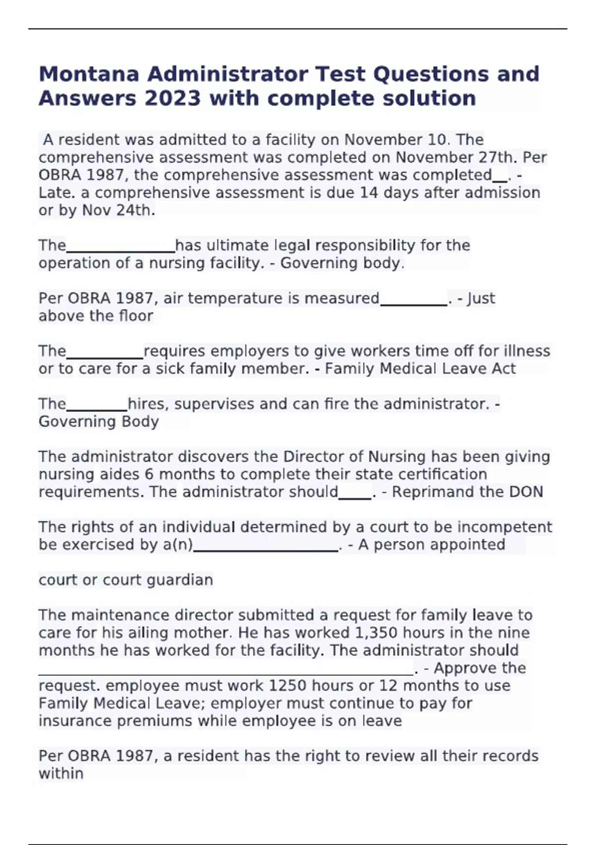 Montana Administrator Test Questions and Answers 2023 with complete solution