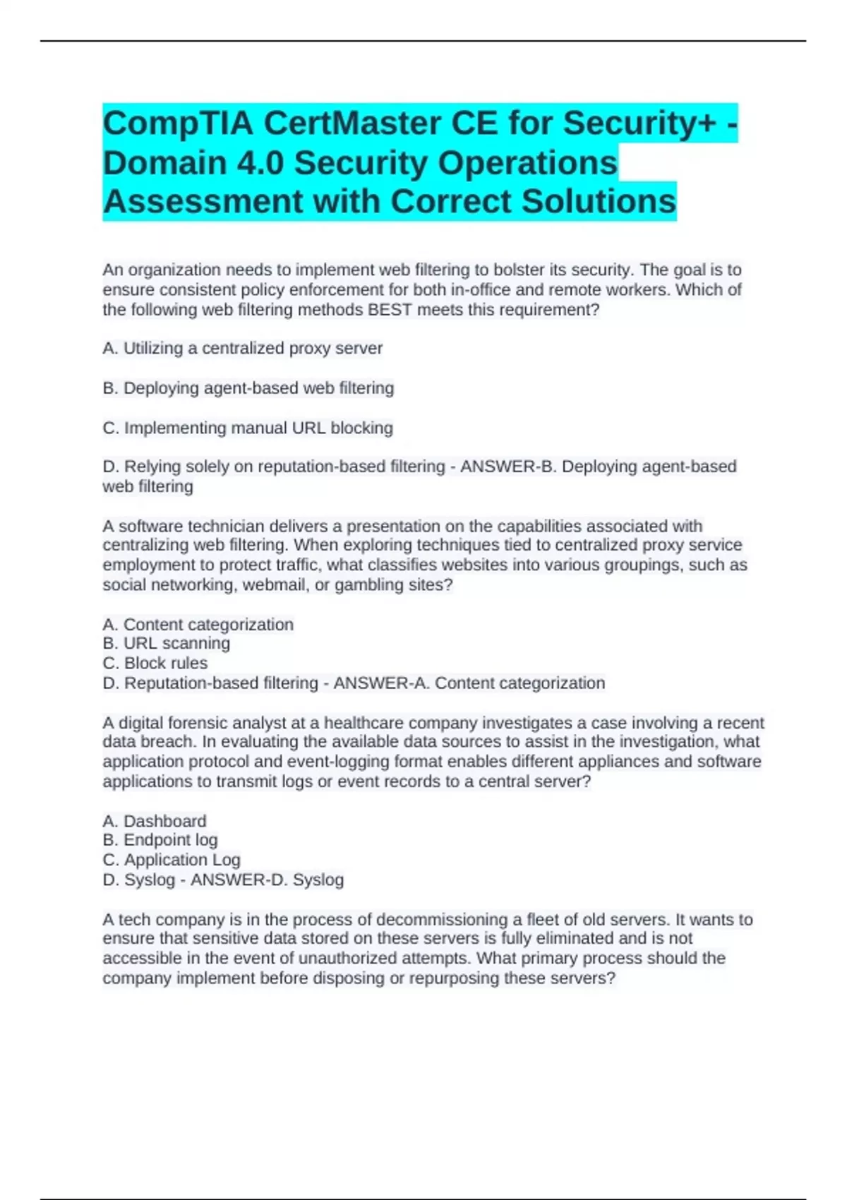 D. Selling the servers immediately - ANSWER-C. Sanitizing the servers