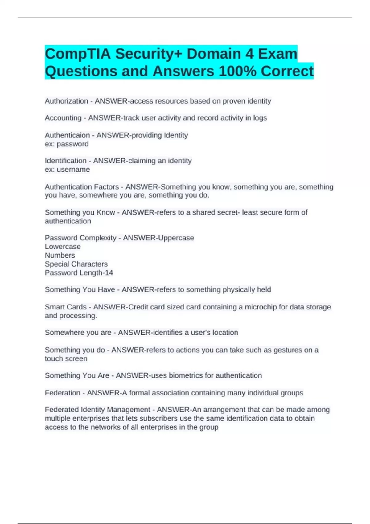 Authenticaion - ANSWER-providing Identity