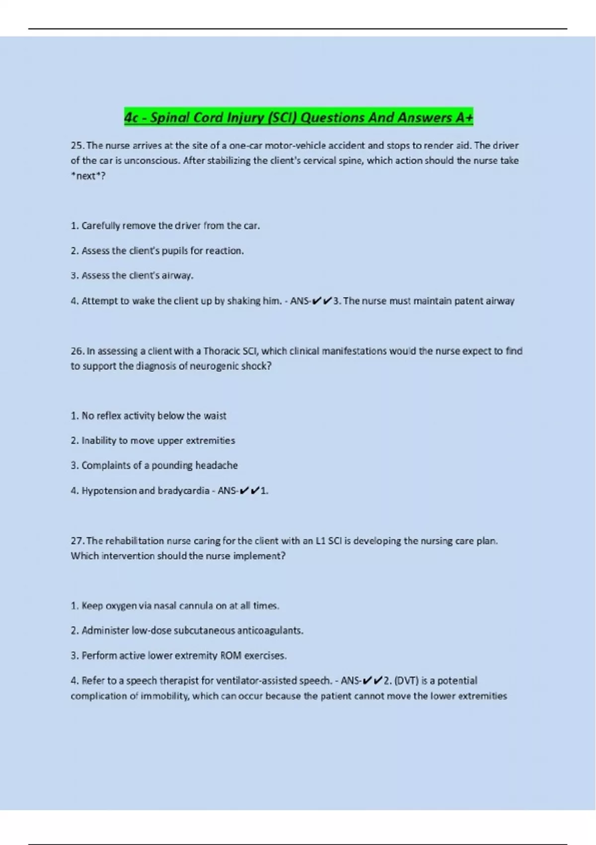 4c - Spinal Cord Injury (SCI) Questions And Answers A+